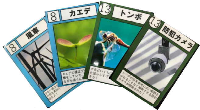 そんなSAGAですが、活動を通してより多くの子ども達にそういった教材を体験してほしいとの思いで、新しく開発したSDGs教材「バイオミミクリー・トランプ」というものを只今クラウドファンディングにて募集中です。